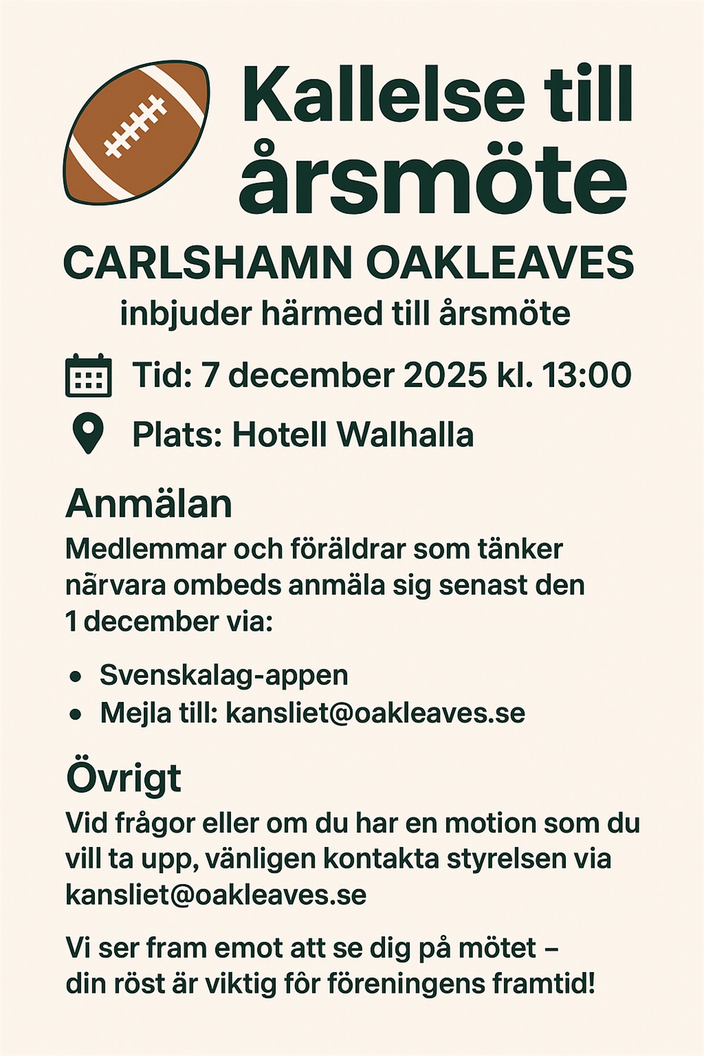 Välkommen till Carlshamn Oakleaves Amerikansk fotboll
